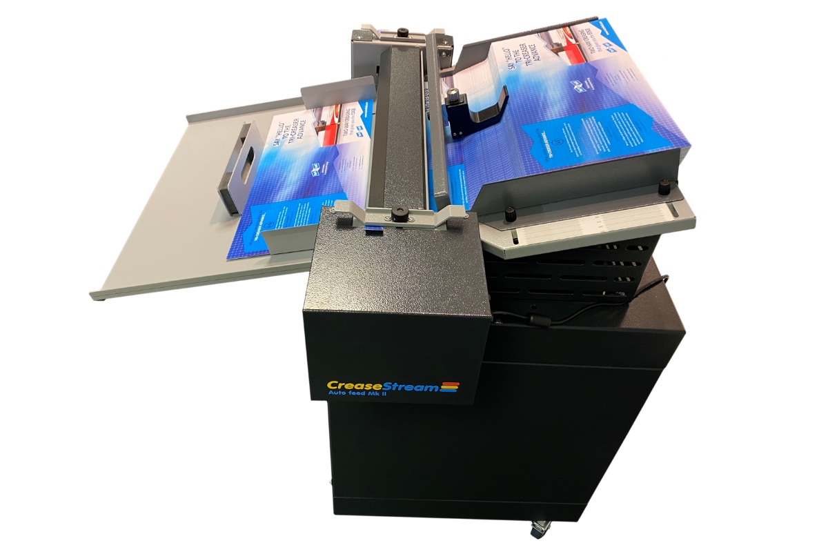 This new model can take a higher stock load of up to 9cm thanks to a specially designed auto fan separator which aids continuous feed consistency. It’s completely easy to set and operate, simply turn the handle to drive the feeder and activate the tooling shaft. The tooling section can hold a combination of up to 5 creasing/micro-perforating tools.
